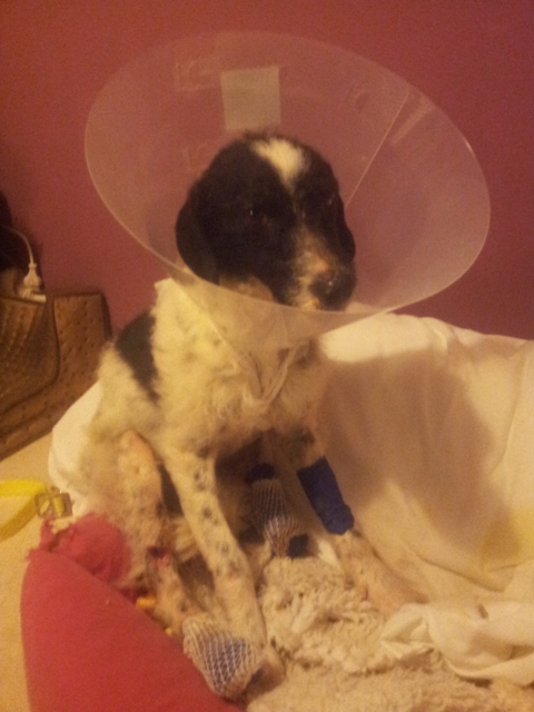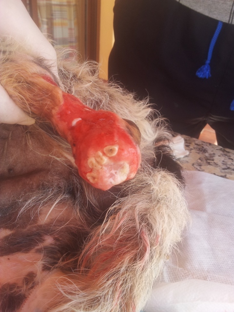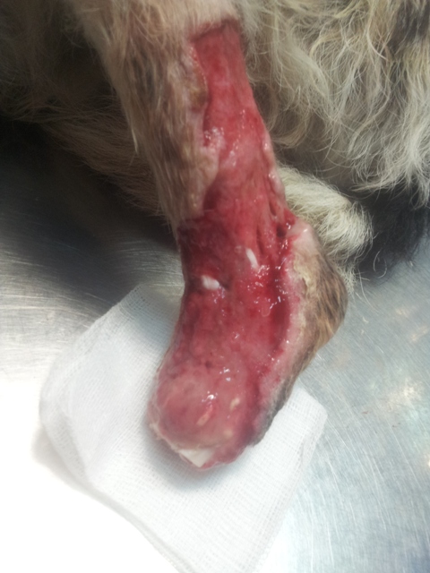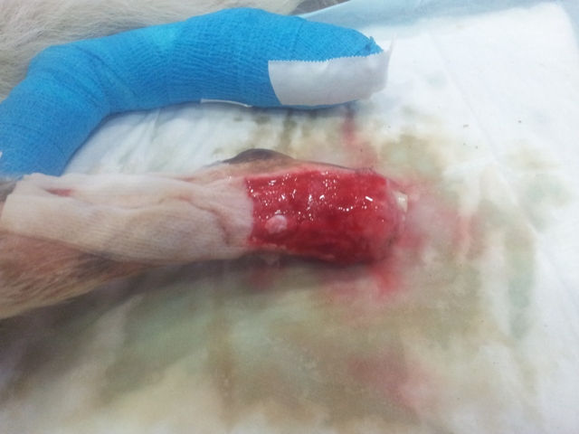 Además de tener sus patitas en carne viva, no hablaremos de la maraña de tendones, huesos y demás que tenia al descubierto.