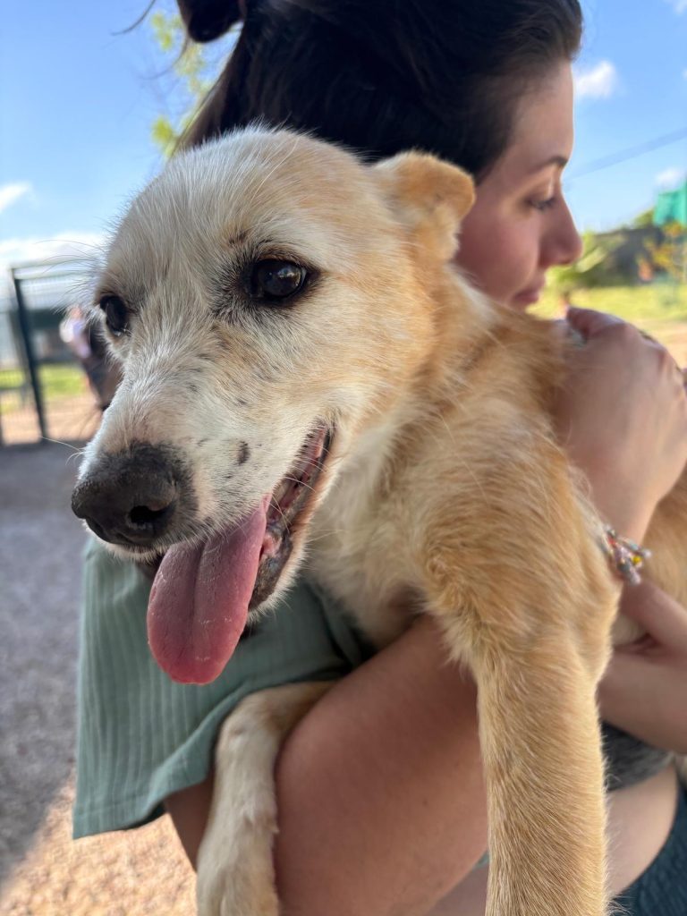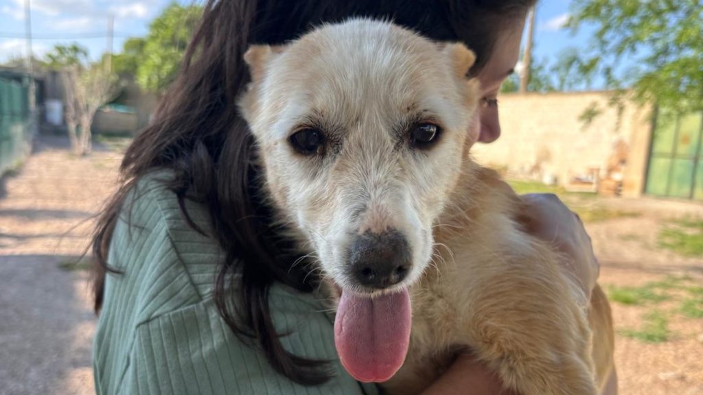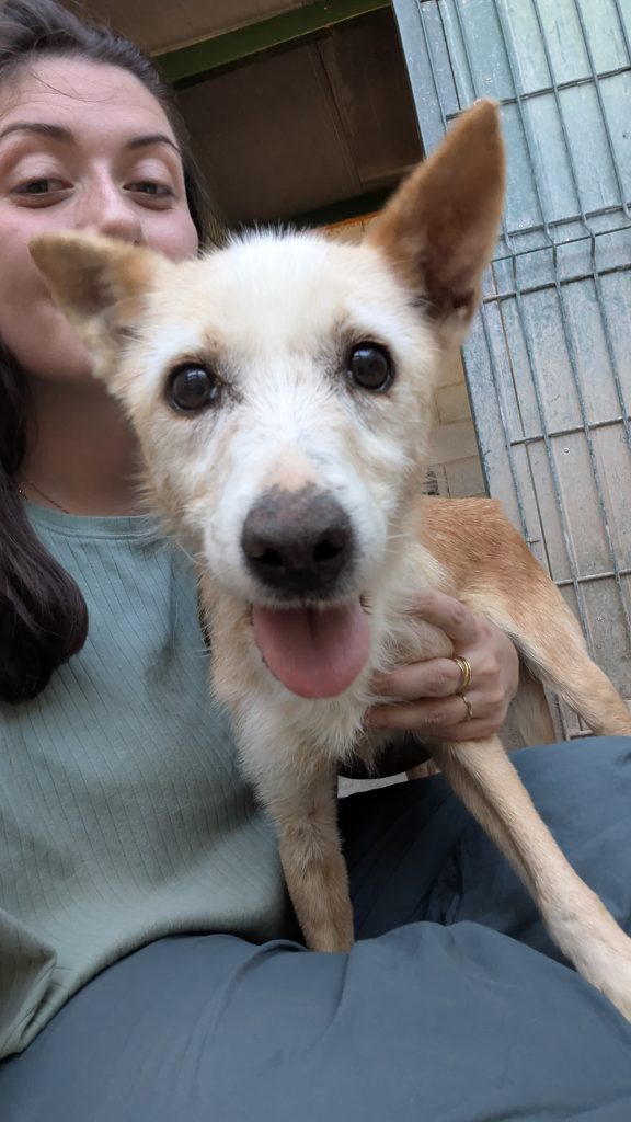 No conocemos su historia anterior, pero su estado cuando fue recogida era lamentable, en los huesos, llena de parásitos y con mucha suciedad. Sin ningún tipo de identificación, pasa a estar en adopción.